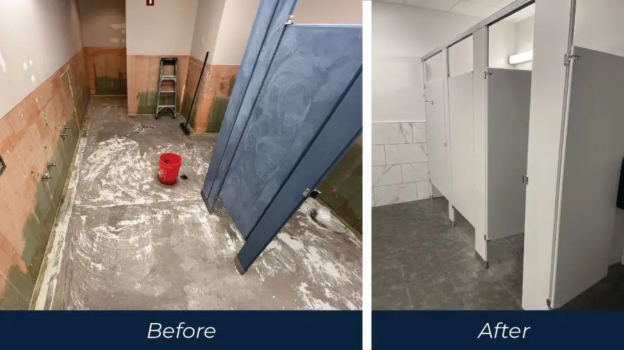 We renovate commercial restrooms and breakrooms with a focus on durability, cleanliness, and compliance. These essential spaces are upgraded for daily use, employee comfort, and professional presentation.
